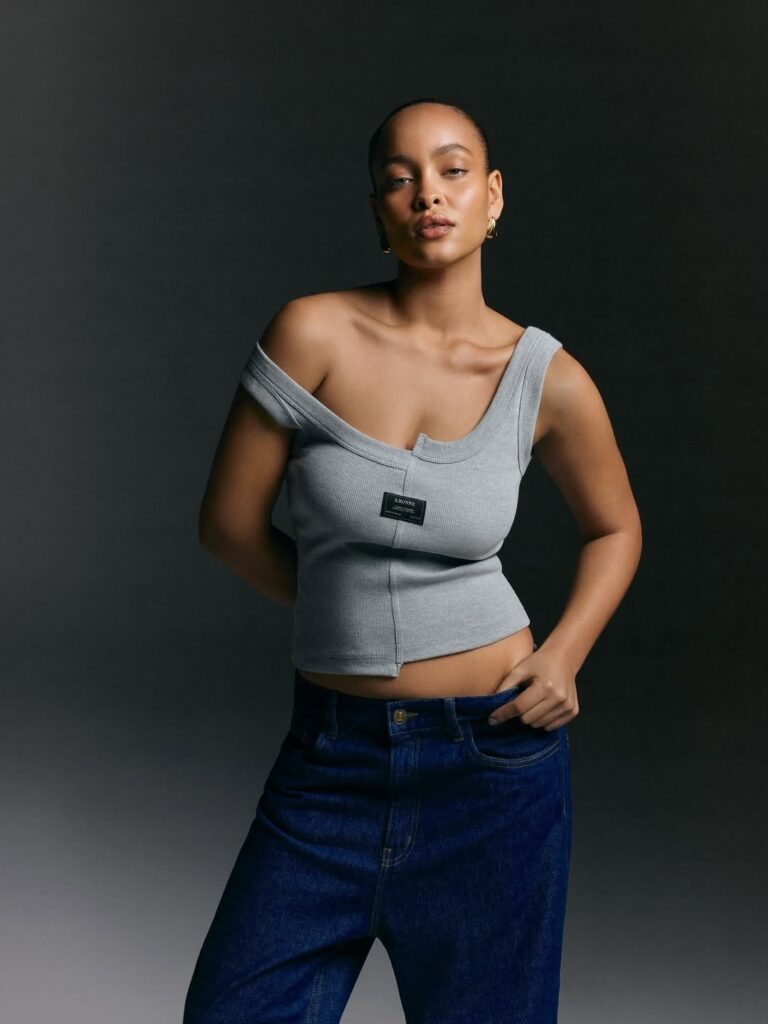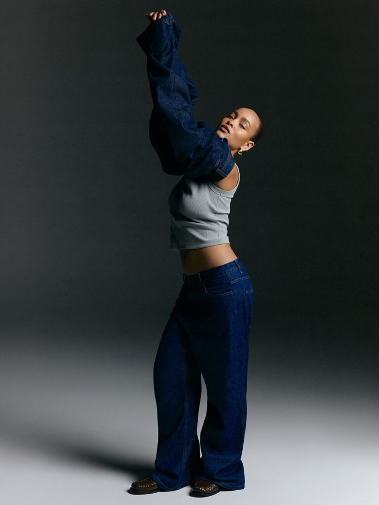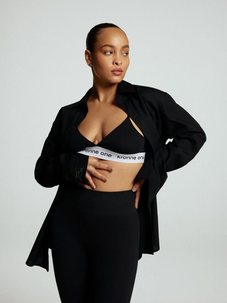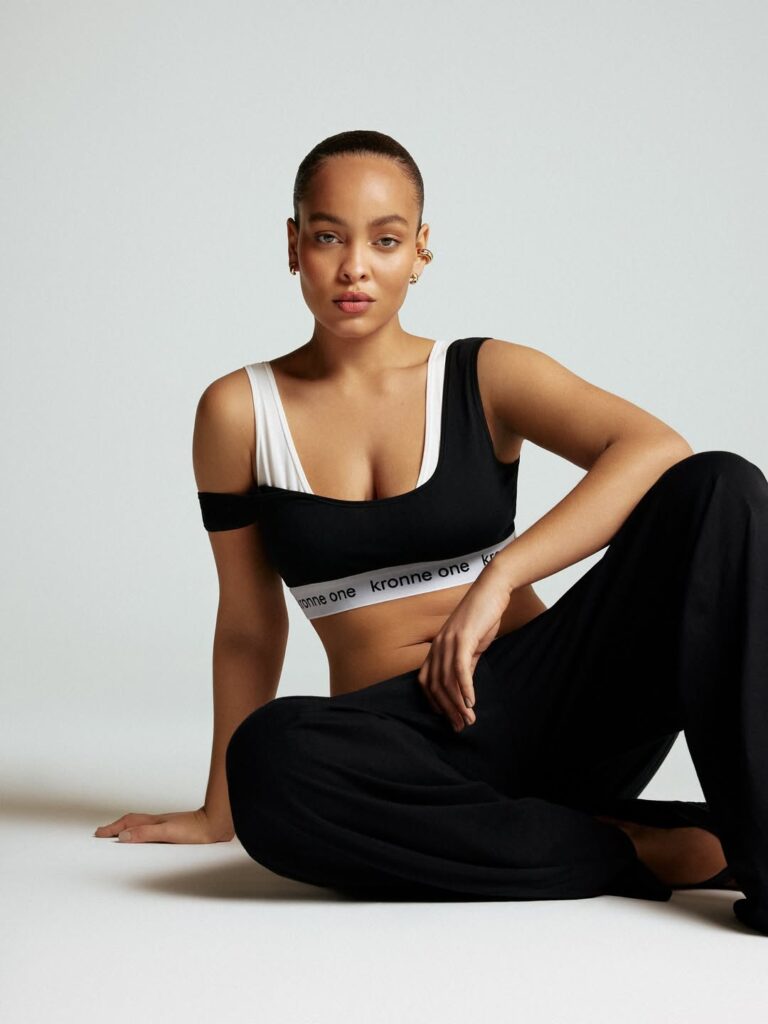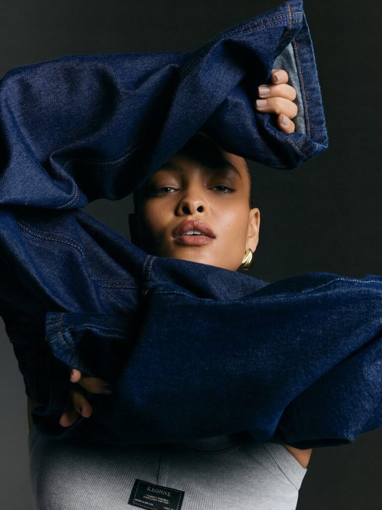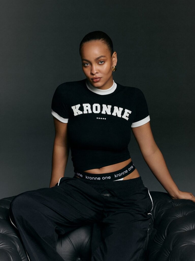 Sara Castro, em fotos de Marcos Dourado, direção criativa de Leydiane Cavalcante, direção de arte de Saul Sales, styling de Gio Grassi (mbgs.cc) e beleza de Ivan Barria (mbgs.cc), na campanha da coleção One da grife Kronne.