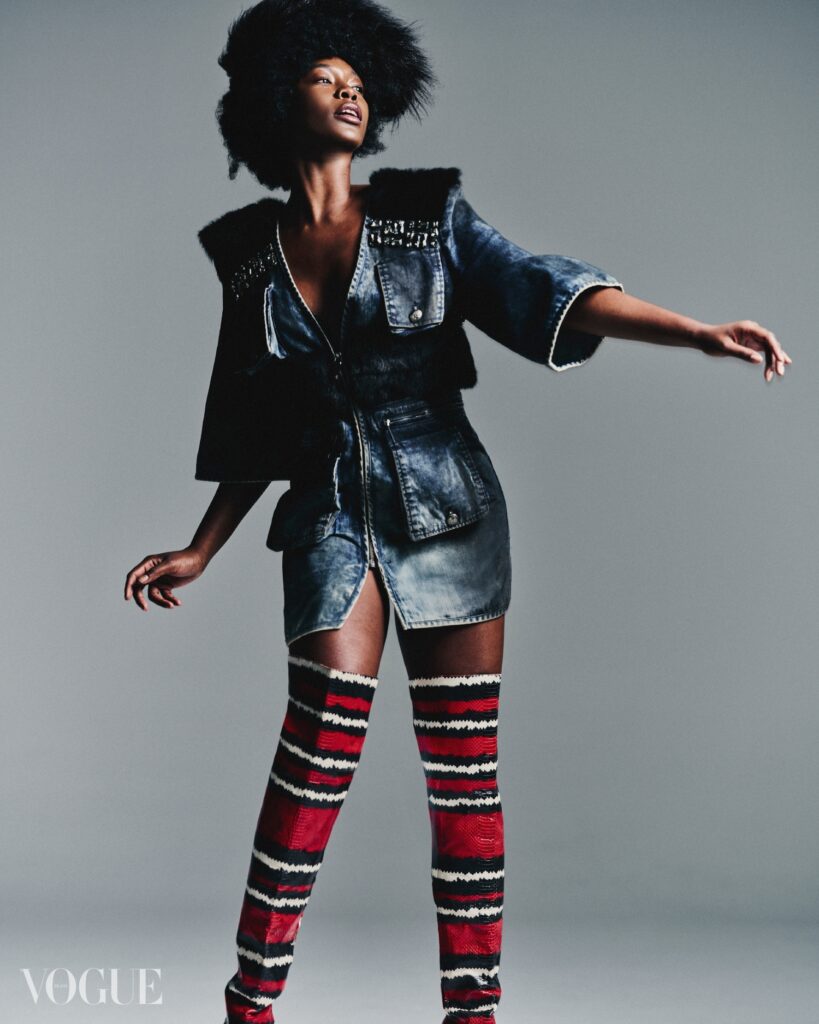 Samira Carvalho, em fotos de Hick Duarte, direção de moda de Rita Lazzarotti e Vivian Sotocórno, direção de arte de Júlia Filgueiras, edição de moda de Daniel Ueda (M.Lages), beleza de Dindi Hojah, cenografia de Pipo Leider, produção executiva de Deia Lansky e casting de Bill Macintyre, no editorial “História Viva” da edição de Outubro da revista Vogue Brasil.