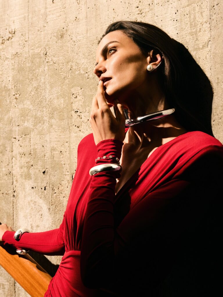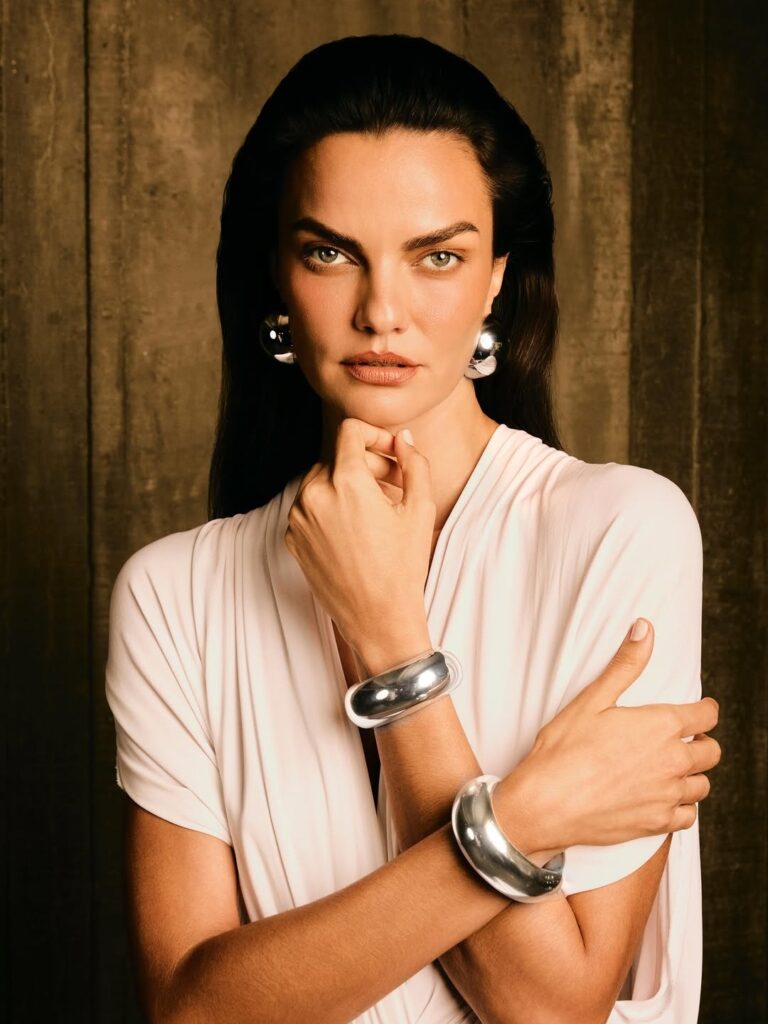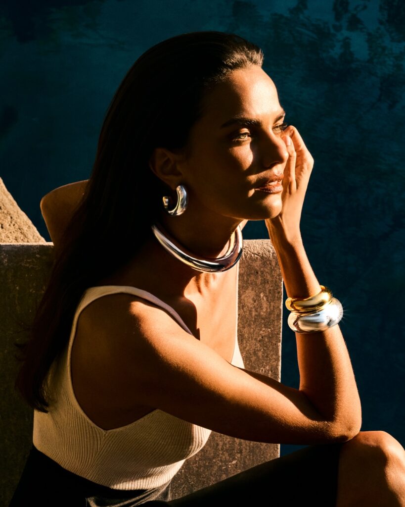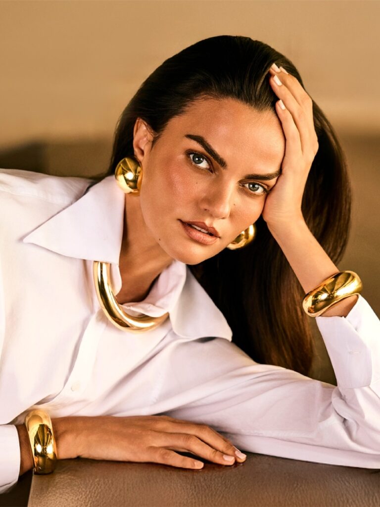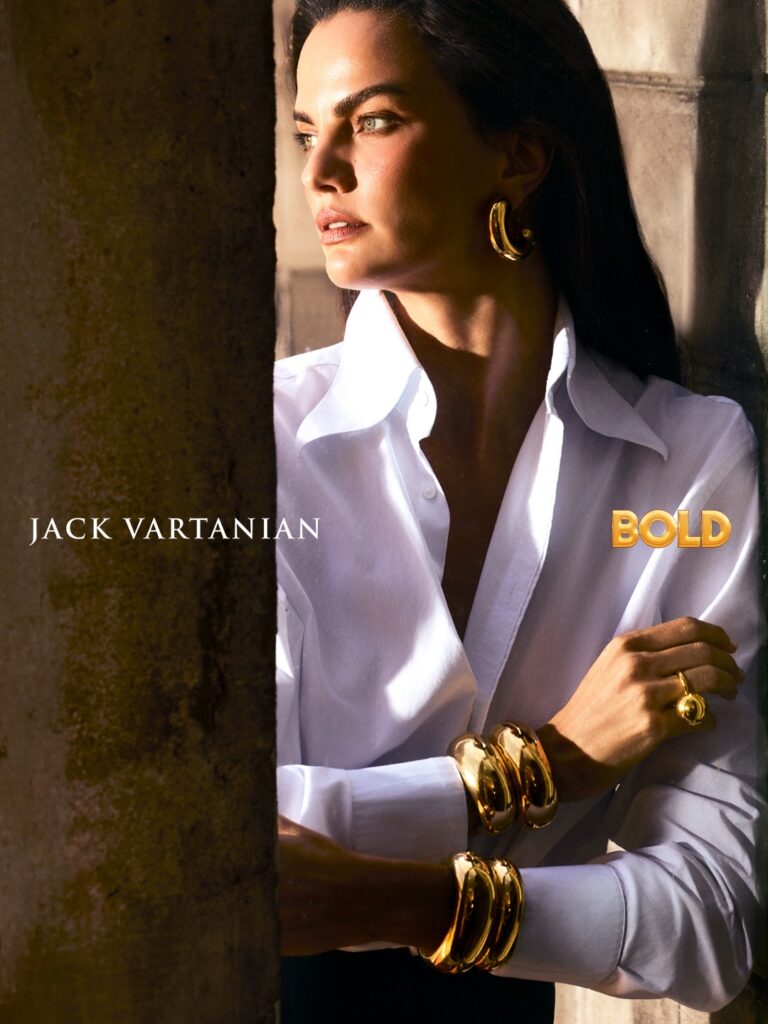 Barbara Fialho, em fotos de Matheus Bellato, direção criativa de Jack Vartanian, styling de Katharina Taylor e beleza de Renato Oliveira, na campanha da coleção Bold da joalheria Jack Vartanian.