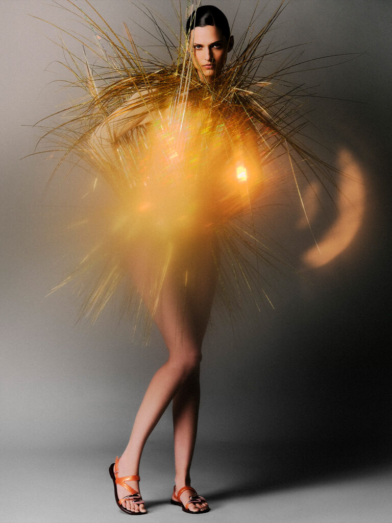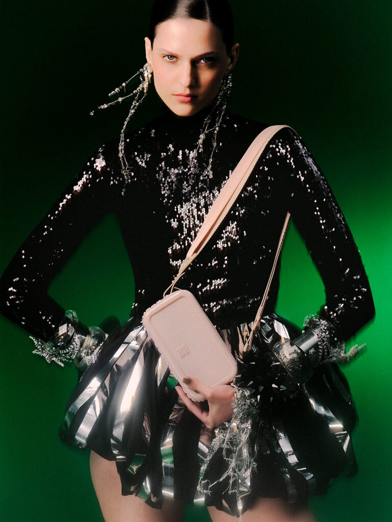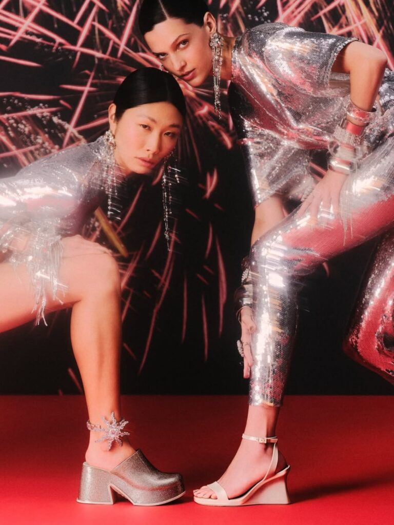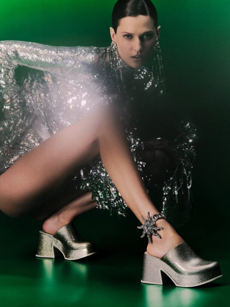 Barbara Rancanti, em fotos de Mariana Maltoni, direção de arte de Luciano Schmitz (Grota Creatives), direção de arte de Anderson Rodriguez, styling de Marcell Maia (M.Lages), beleza de Daniel Hernandez (M.Lages), produção executiva de Grota Creatives e tratamento de imagens de Helder Bragatel, na campanha Happy Holidays 2025 da grife Melissa.