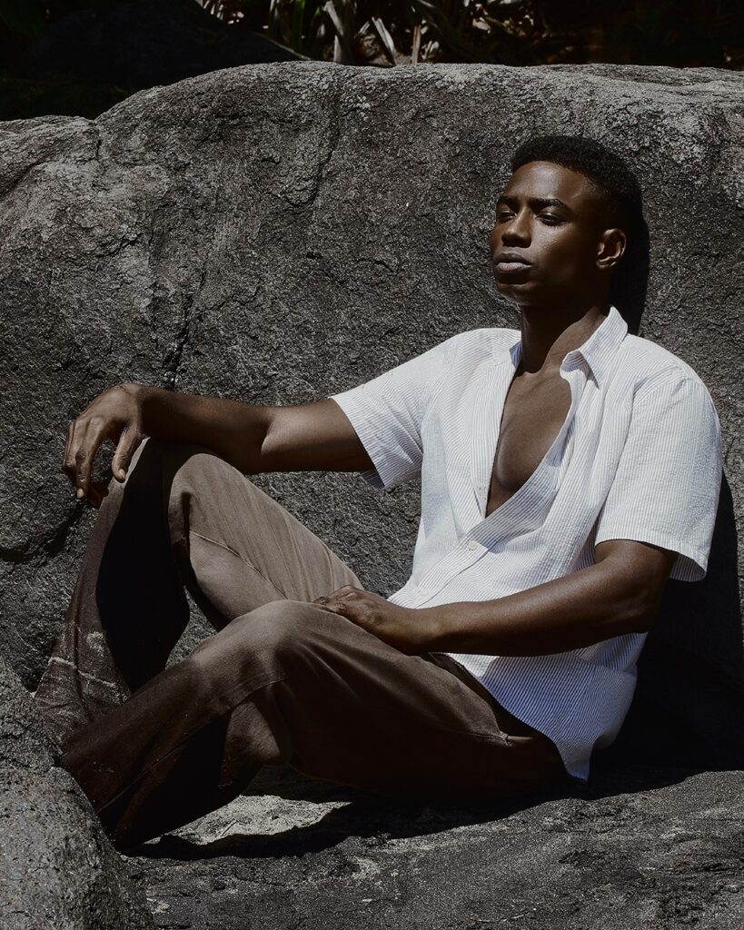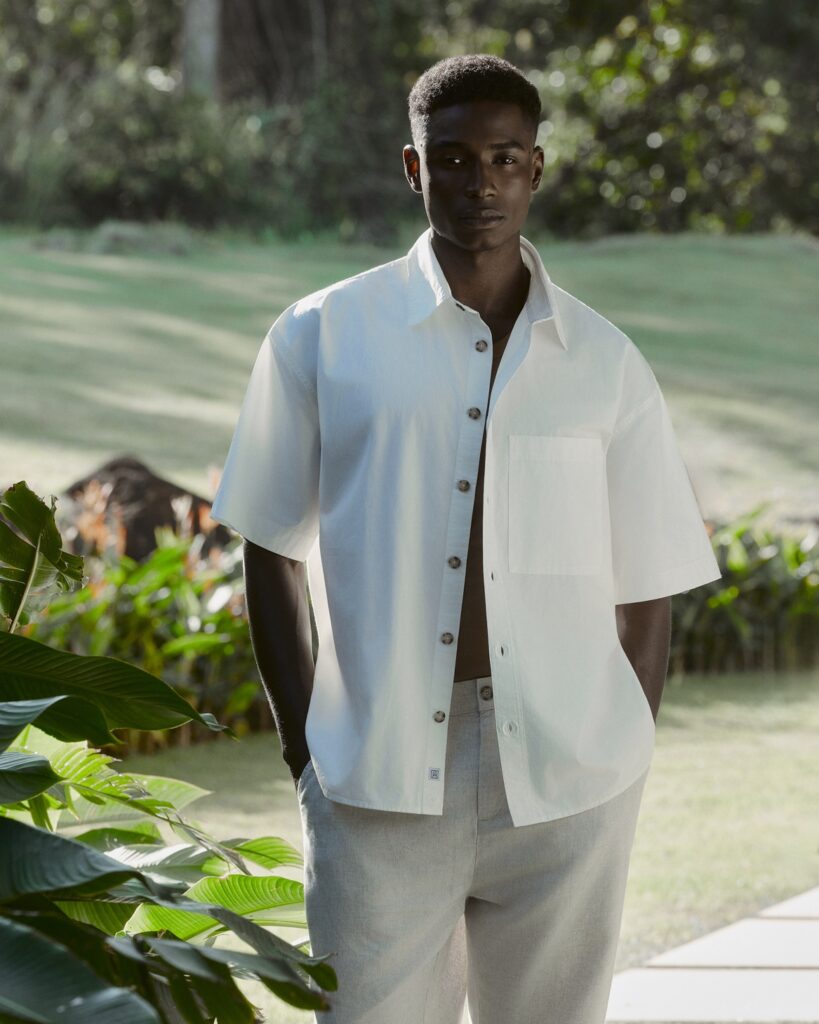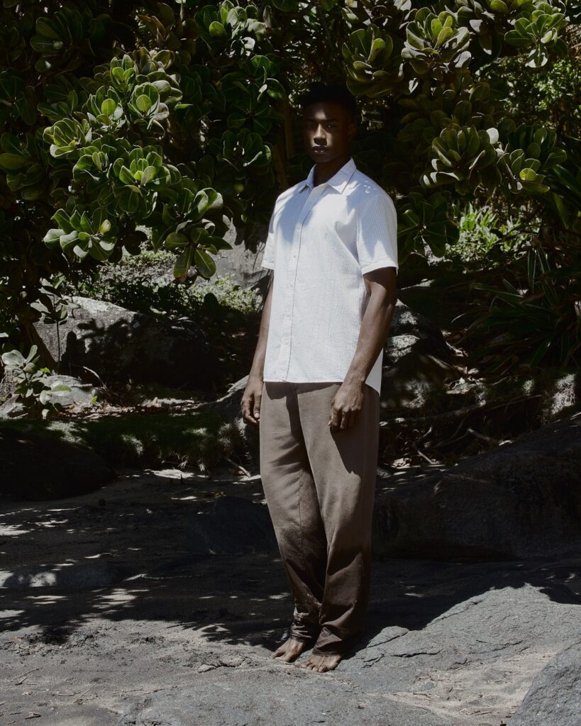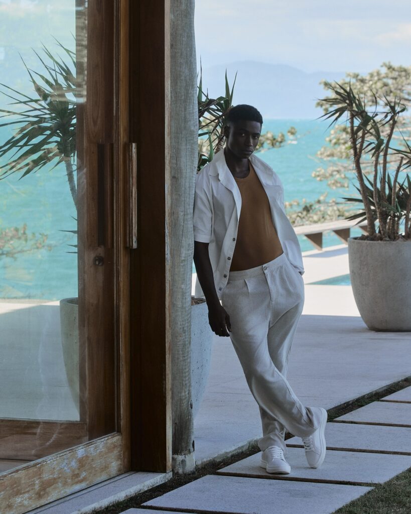 Christopher, em fotos de Hugo Toni, direção de arte de Renata Thina, styling de David Albuquerque, beleza de Pamella Franco e produção de AKWE Produções, na campanha de Verão 2026 da grife Oriba.