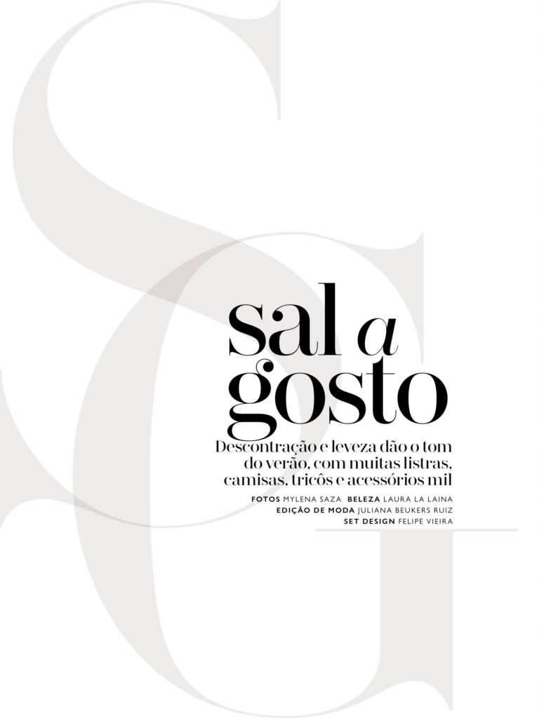 Carol Perlingeiro, em fotos de Mylena Saza (ODMGT), direção criativa de Italo Massaru, edição de moda de Juliana Beukers, beleza de Laura La Laina (mbgs.cc), cenografia de Felipe Souza e coordenação de produção de moda de Bernardo da Mata, no editorial “Sal a Gosto” da edição de número 70 da revista Cidade Jardim.